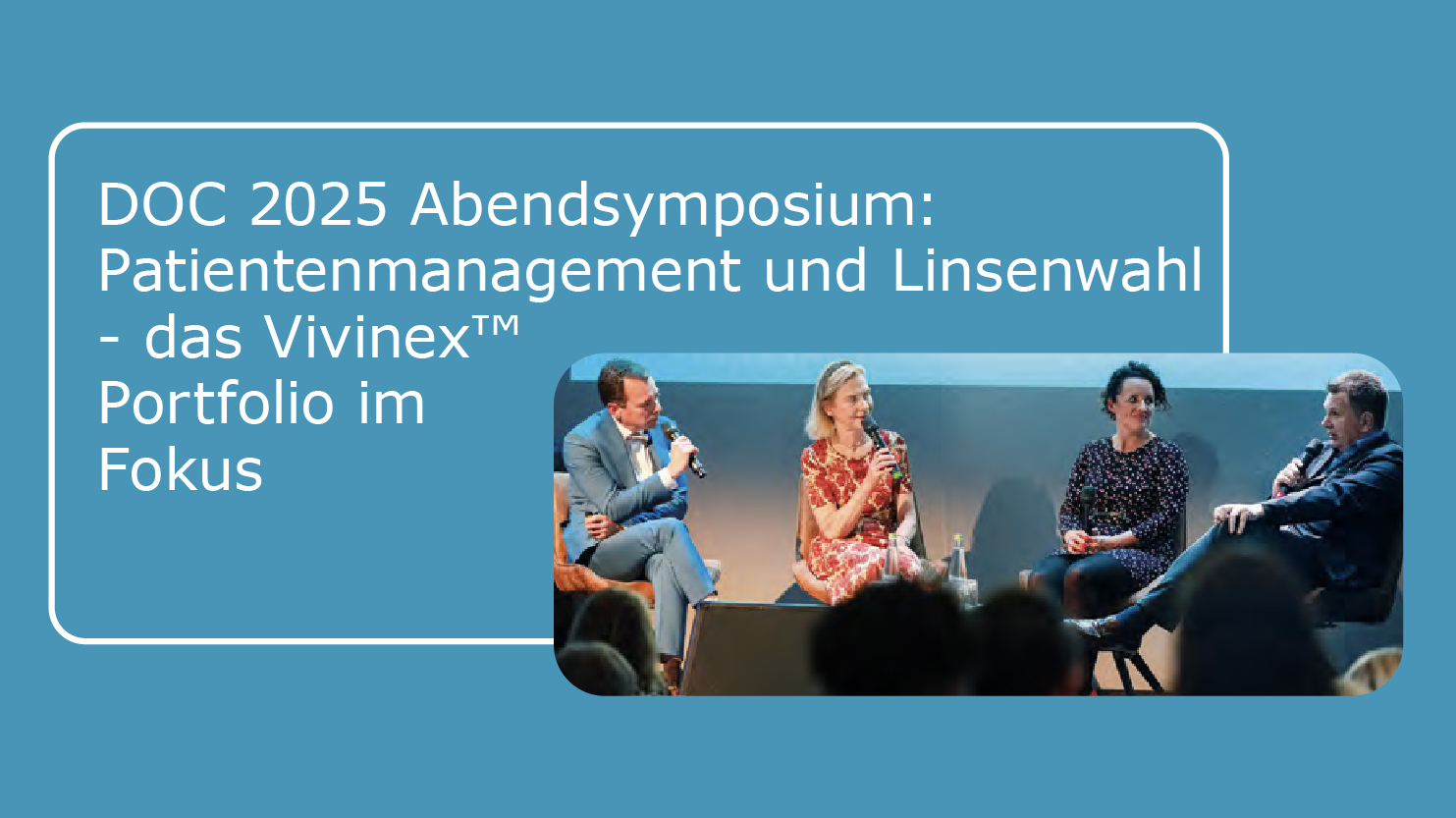 Beim HOYA Surgical Optics Abendsymposium im Rahmen der DOC 2025 diskutierten Catharina Richt, Dr. Stefanie Schmickler, Dr. Christian Ahlers und Dr. Harald Gäckle über patientenzentriertes Vorgehen und den Einsatz der Vivinex™ IOLs. Anhand konkreter...